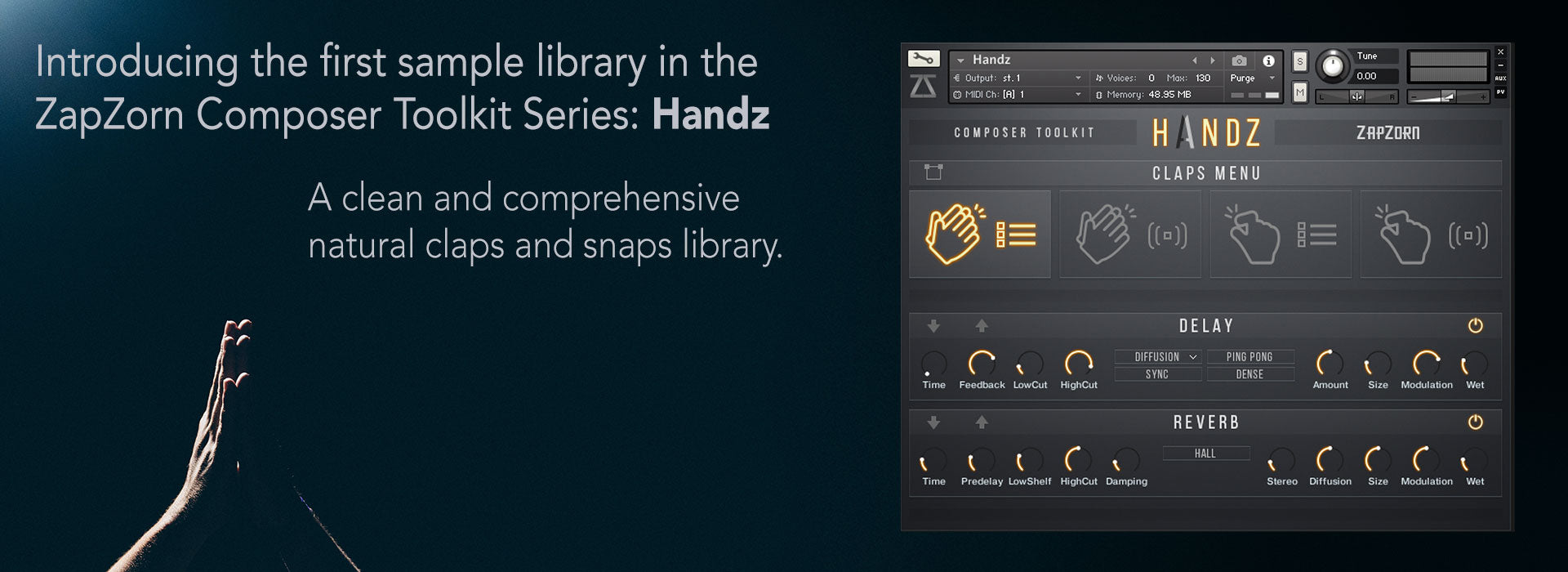 Check out our latest and first offering in our new Composer Toolkit Series: Handz! This is a pristine claps and snaps library that is clean enough for your pop record and versatile enough for your EDM masterpiece. These naturally recorded samples are laid out in an intelligent way to allow producers to get exactly what they are looking for in claps and snaps.